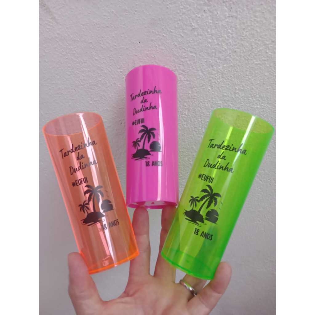 Kit copo long drink neon cores sortidas personalizado um lado qualquer tema arte preta
