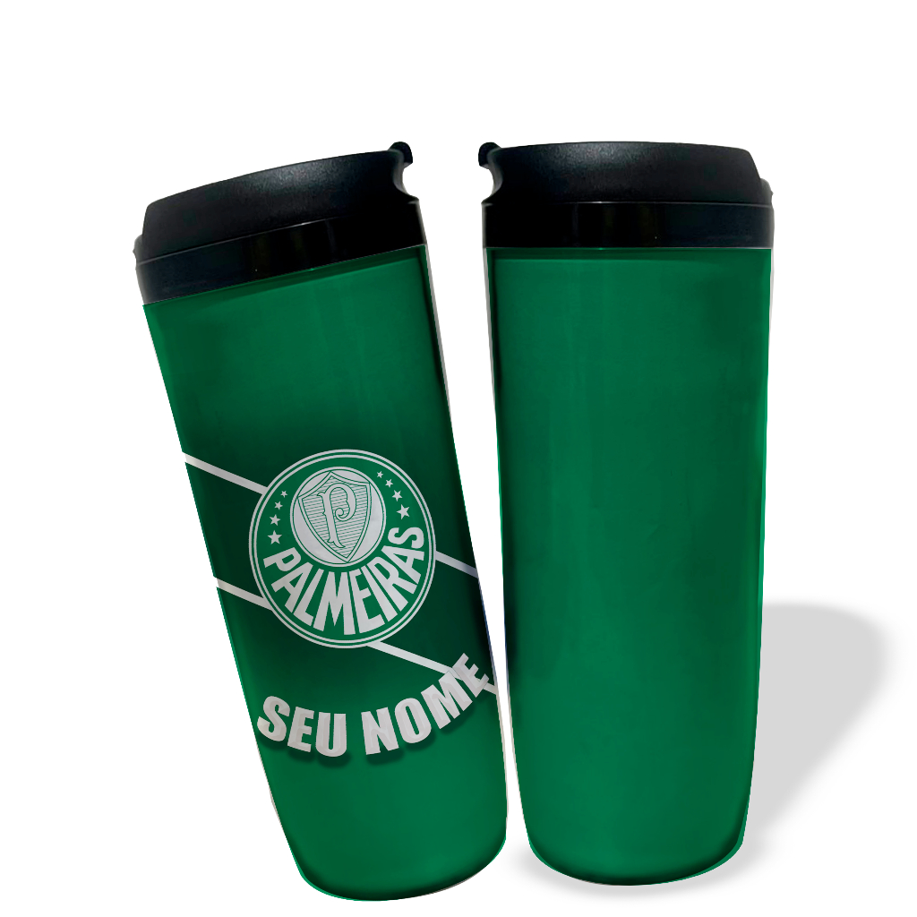 Kit Copo Térmico, com Almofada e Chaveiro Palmeiras
