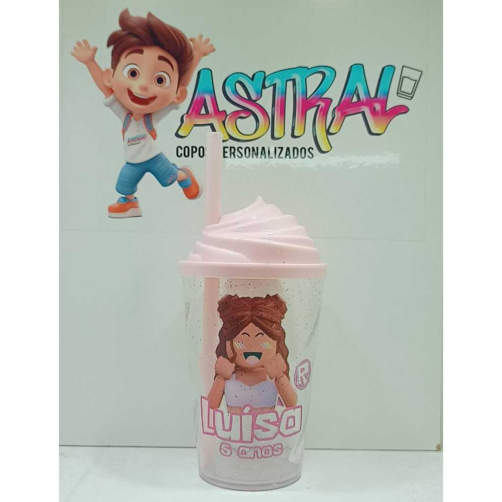 KIT COPO TWISTER PERSONALIZADO 300ML ROBLOX MENINA (TAMPA CHANTILLY)