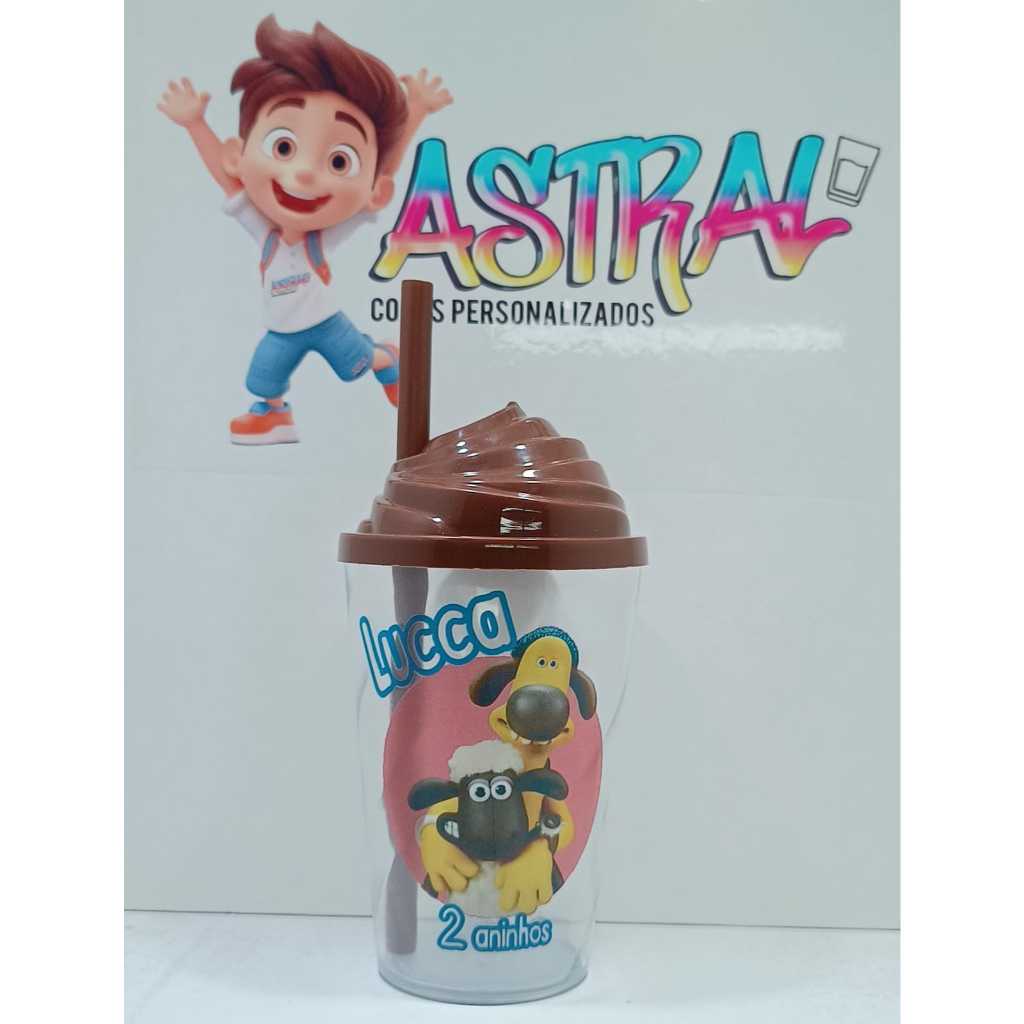 KIT COPO TWISTER PERSONALIZADO 300ML SHAUN O CARNEIRO (TAMPA CHANTILLY)