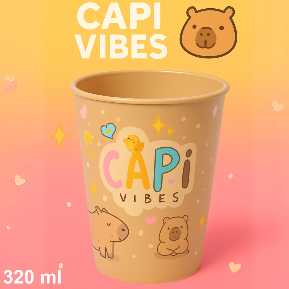 Kit Copos Capivara Vibes 320ml Diversos Tamanhos, Divertidos e Reutilizáveis para Festas e Dia a Dia