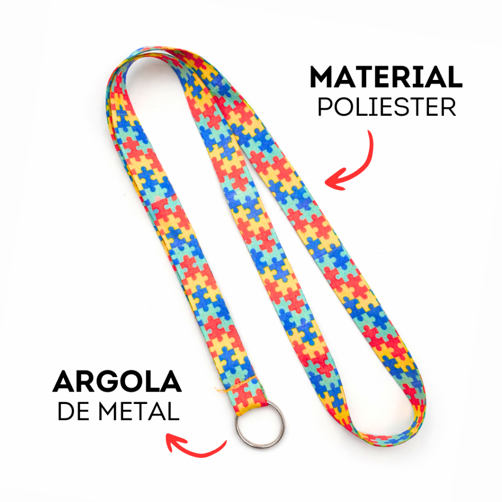 Kit Cordão Autismo c/ Porta Crachá Emborrachado Identificação Autista
