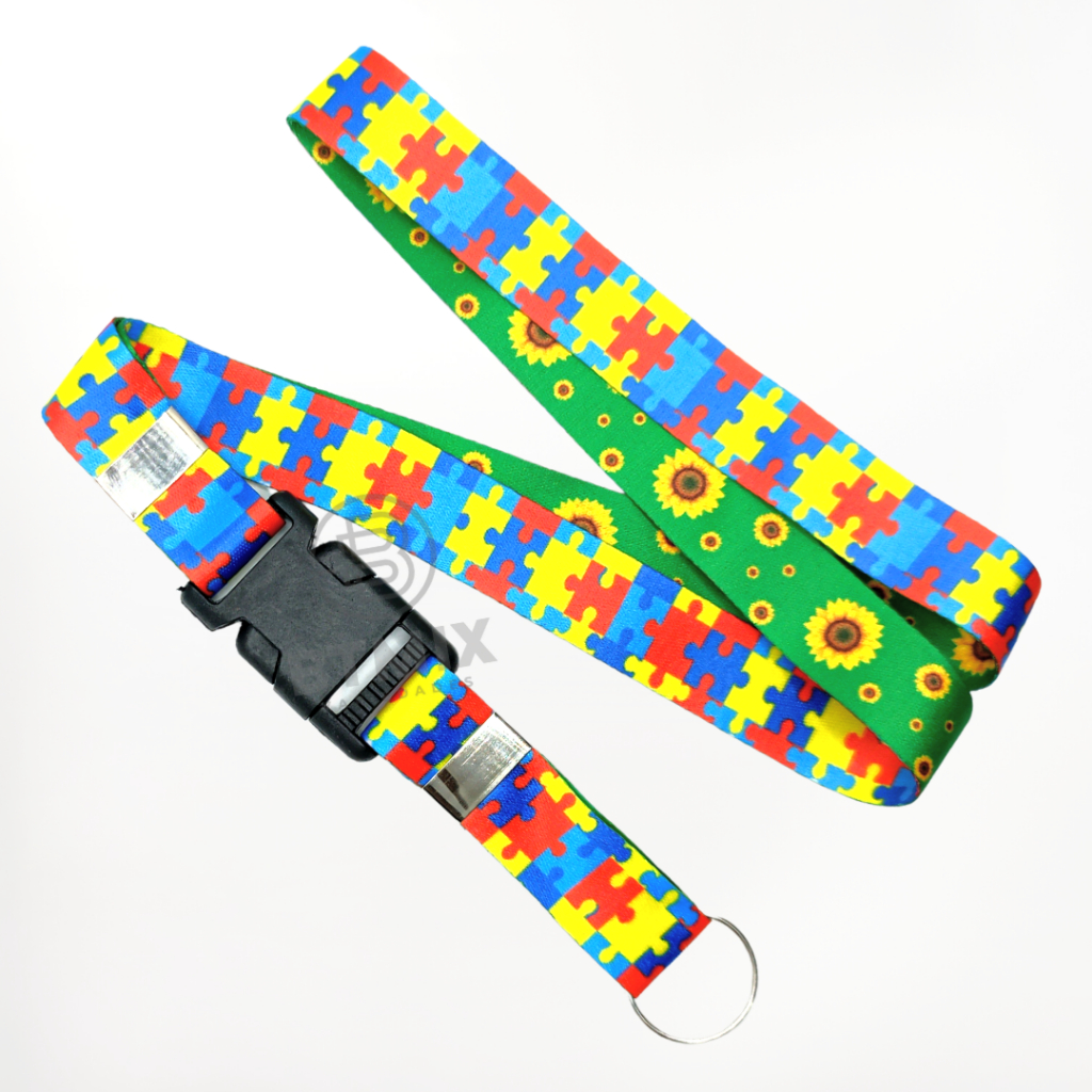 Kit Cordão Dupla Face Autismo Girassol Autismo Autista com Porta Cartão Transparente Dupla Face Vertical