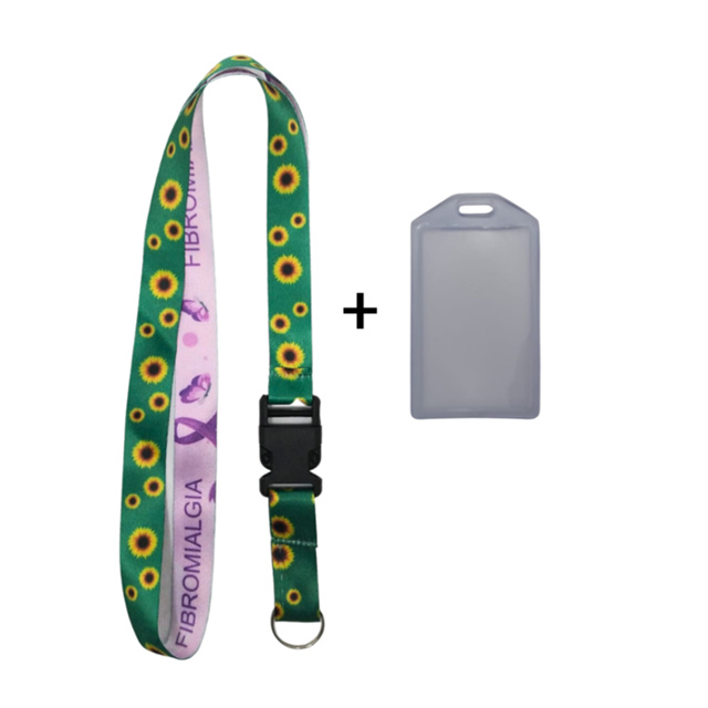 kit Cordão Pescoço Fecho Engate Fibromialgia + Porta Cartão Crachá Maleável