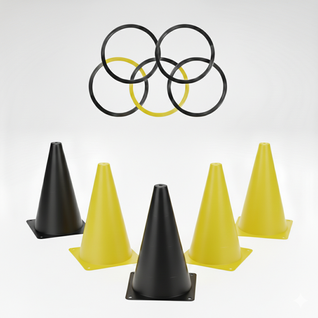 KIT CORDENAÇÃO MOTORA-ATIVIDADES LUDICAS-KIT 5 CONE, 10 MINI ARGOLAS JOGOS FUNCIONAIS-ATIVIDADES LUDICAS