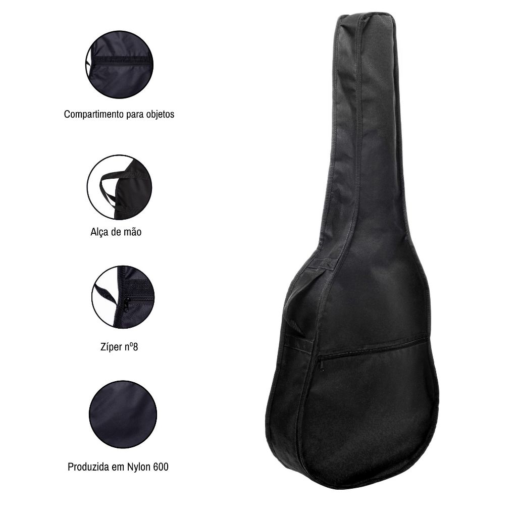 Kit Correia Capa para Violão Clássico Folk Alça Dupla + Correia Standard 5cm