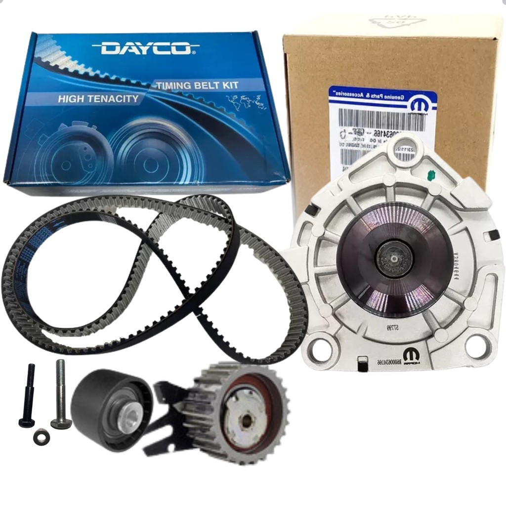 KIT CORREIA COMANDO + BOMBA ÁGUA Marca: Kit Correia - DAYCO Bomba Dagua - FIAT CONTÉM NO KIT: 1 BOMBA D'AGUA 1 CORREIA DENTADA 1 ROLAMENTO TENSOR 1 ROLO GUIA 2 PARAFUSOS Produto novo de qualidade original e com nota fiscal. Aplicável nos seguintes veículos: Montadora: Fiat; Veículo: Toro; Motor: 2.0 16v DIESEL ; Ano de fabricação: 2016, 2017, 2018, 2019, 2020, 2021, 2022; Montadora: Jeep; Veículo: Renegade; Motor: 2.0 16v DIESEL; Ano de fabricação: 2016, 2017, 2018, 2019, 2020, 2021; Montadora: Jeep; Veículo: Compass; Motor: 2.0 16v DIESEL ; Ano de fabricação: 2015, 2016, 2017, 2018, 2019, 2020, 2021, 2022. Dúvidas frequentes: O Produto é novo? Sim, nós trabalhamos apenas com produtos novos e originais com garantia. O Produto é original? Sim, nós só trabalhamos com distribuidores representados pelos fabricante, ou compramos diretamente dos fabricantes, gerando confiança da originalidade do produto. Tem garantia? Sim, todos nossos produtos têm 3 Meses (90 dias) de garantia contra defeitos de fabricação, exceto os amortecedores que possuem 2 anos de garantia total. O produto é igual ao da foto? Sim. Todas as fotos são fiéis ao que você irá receber, e para facilitar a sua compra ilustramos também o veículo em que se aplica o produto. Em quanto tempo recebo minha compra? É muito simples, basta colocar seu CEP no calculador de frete do anuncio. Envia ainda hoje? Sim, comprando até as 13:00h postamos no mesmo dia. Como faço para saber se o produto deste anúncio se aplica ao meu veículo? Você pode conferir se o produto se aplica no seu carro através da descrição do anúncio no item: “Aplicação dos Veículos”. Caso tenha alguma dúvida, entre em contato com nossa equipe e os profissionais qualificados irão te orientar em qualquer dúvida, estamos sempre a disposição. Tem alguma dúvida sobre o produto ou sobre a compra? Deixe sua pergunta abaixo, que responderemos prontamente.