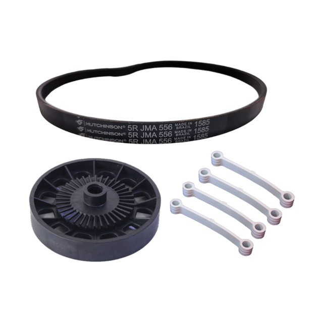 Kit Correia Estriada, Polia Lisa e 4 Tirantes Branco Compatível Brastemp e Consul