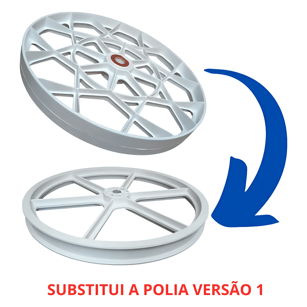 Kit composto por: 1 polia do agitador original 1 correia original 1 cupilha (trava do eixo) original Modelos Compatíveis: LCS8, LCS10, LCS12, LCS13, LCS14, LCS15, LCS16, LCS18, LAS10, LCS20.1, TQ15, LAS13 Confirme o tamanho da polia original de seu tanquinho antes de realizar a compra. A polia do kit tem 24cm de diâmetro. OBS: A POLIA PRECISA SER INSTALADA BEM JUSTA. A CUPILHA PRECISA TRAVAR TOTALMENTE A POLIA NO EIXO DO AGITADOR, CASO CONTRÁRIO AS PEÇAS PODEM SER DANIFICADAS.