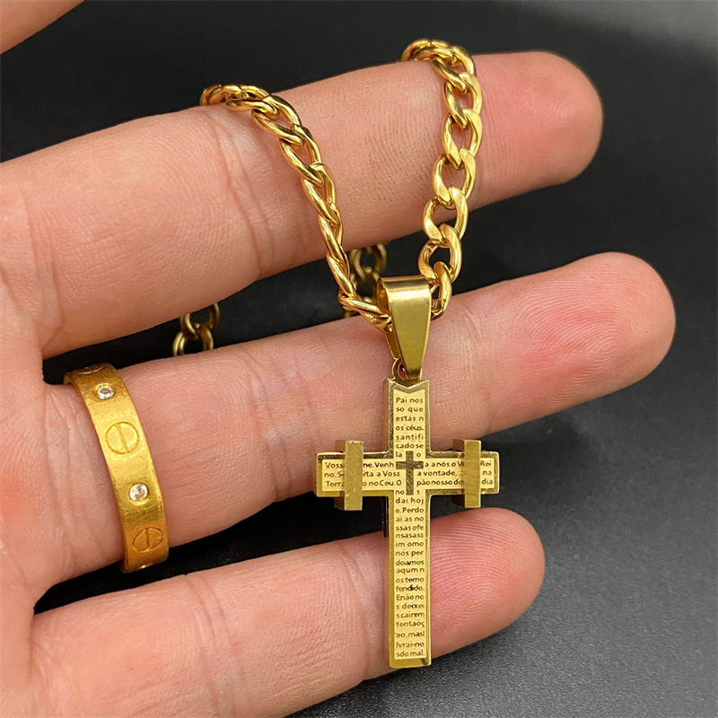 | Kit Corrente e Pulseira Masculina com Pingente de Cruz Pai nosso co... este produto | R$ 12,67 | 70% | 4.8/5 | 60 |