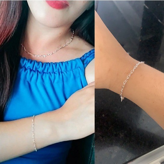 Kit Corrente Pulseira Coração Prata 925 Legítima - Colar 45 cm
