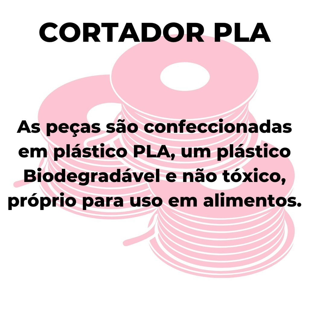 Contém: Cortador com 3 e 5 cm. Produto feito em PLA ( material biodegradável) e fabricado através de impressora 3D. Os cortadores podem ser utilizados em pasta americana, pasta de leite ninho, massa de biscoito e biscuit. Instruções de uso: Os cortadores não deverão ser expostos a temperatura superior a 40°. Para limpar utilize água corrente e detergente neutro. O produto não possui uma cor específica, será enviado a que estiver disponível no estoque. Envio- Enviamos para todo o Brasil e nossa postagem do pedido em até 24H de segunda à sexta e fins de semana e feriados no dia útil seguinte após a aprovação do pagamento (tempo de entrega calculadora na hora da compra). Temos garantia para qualquer problema e os produtos são enviados com embalagem de alta qualidade para chegue intacto e sem danos. Cuidados- -Para limpar, utilize uma escova de cerdas macias; -Lave somente com água fria; -Use detergente neutro para a higienização; -Não utilizar em alimentos quentes ou mornos, a alta temperatura pode gerar danos ao seu produto.