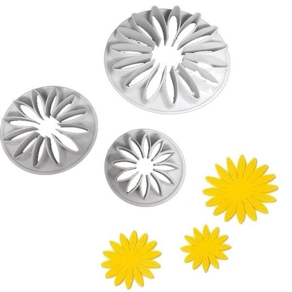 Kit Cortador Molde Girassol 3 Peças Biscuit Pasta Americana Confeitaria