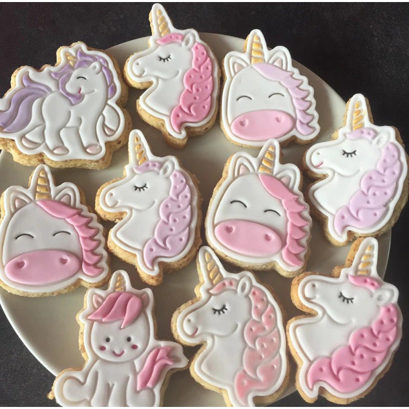 KIT Cortador Molde Marcador Unicórnio Biscuit Pasta Americana Confeitaria