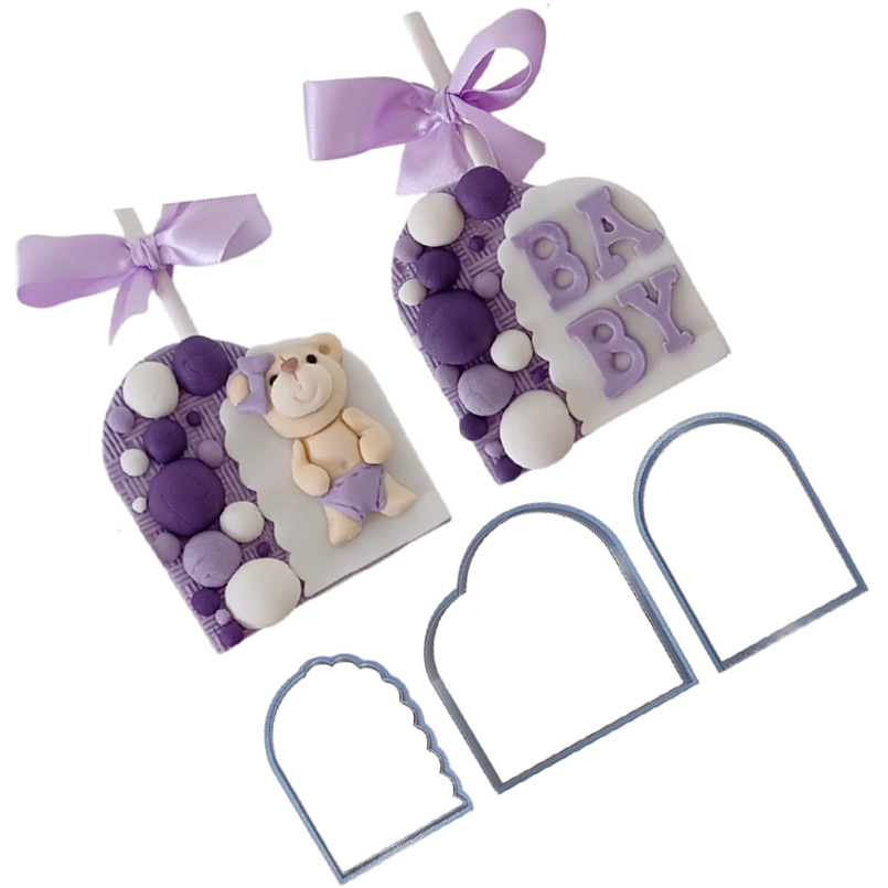 Kit Cortador Moldura 8,3cm x 8,1cm com Babados 3 peças para pasta americana pão de mel - mod. 01 - 27130