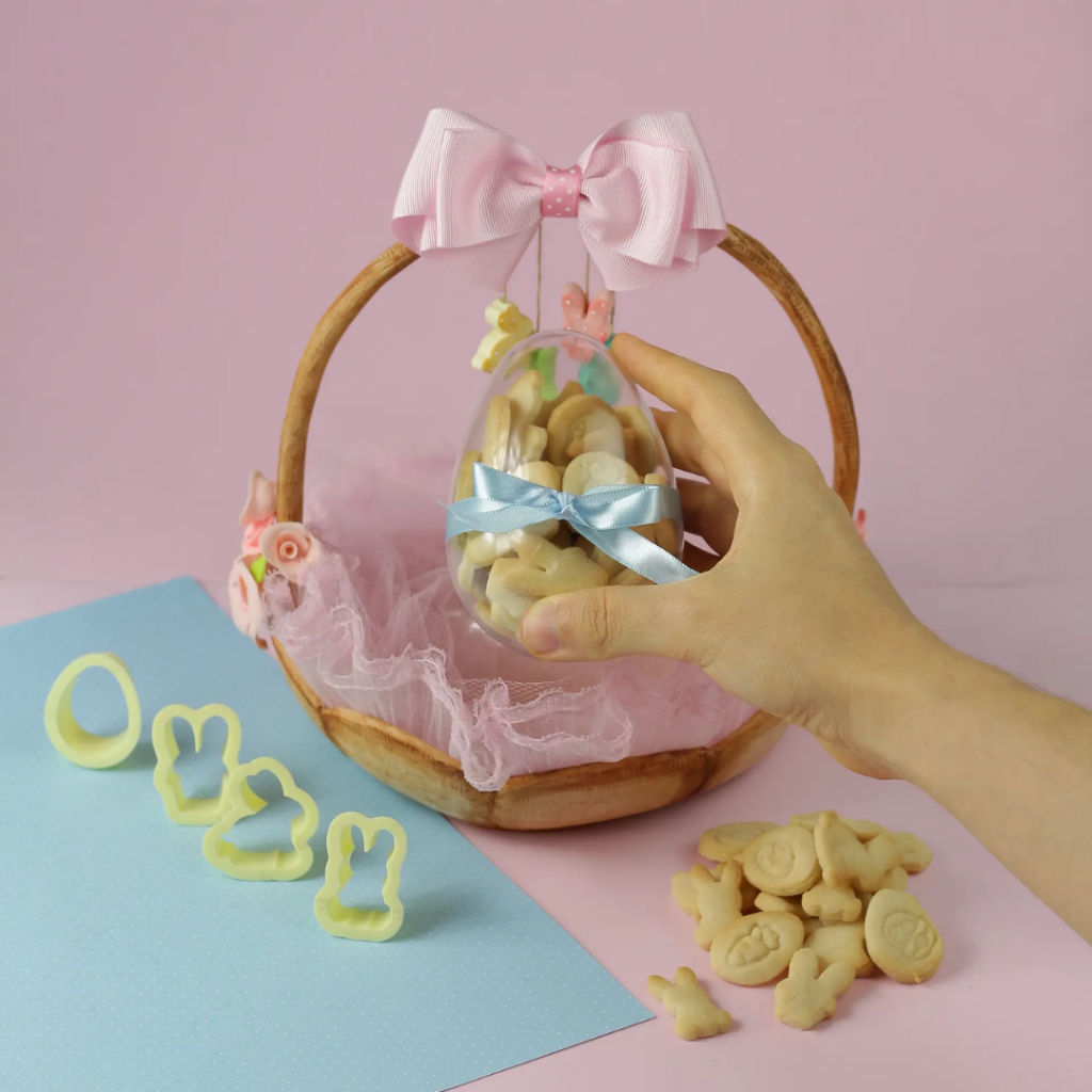 Crie lindas decorações na época mais doce do ano com as marcações do Kit Cortadores Páscoa Brilhante (3cm) Cupcake com orelhinhas, coelho sentado, coelho de lado e ovo Lucre nesta Páscoa com criações ainda mais atrativas usando a linha feita especialmente para este período! Tem o tamanho perfeito para pequenos biscoitos super delicados ou para decorações de cupcakes e bolos em pasta americana.