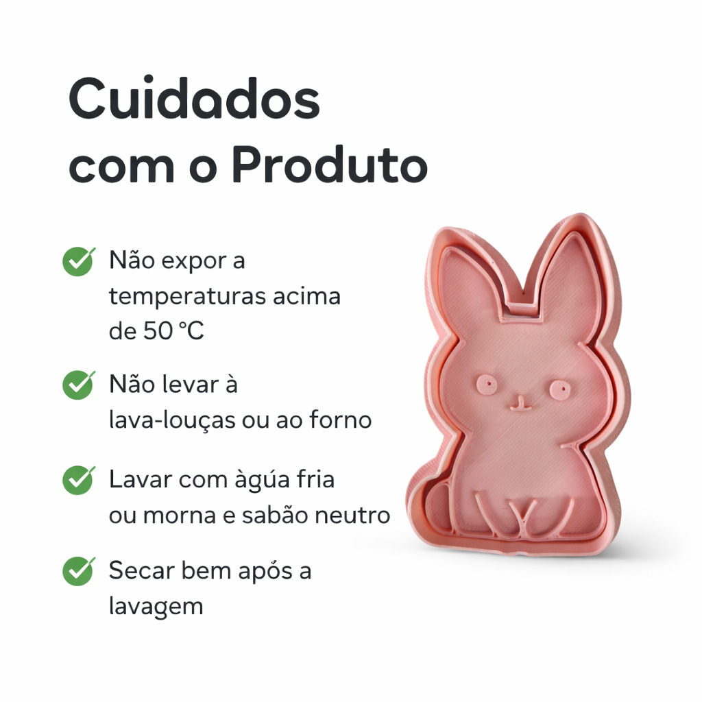 Crie doces personalizados e encantadores com o Kit Cortadores e Marcadores Coelhinhos da Pascoa, perfeito para confeitaria criativa, lembrancinhas e produções artesanais. Com modelos inspirados nos distintivos dos personagens, você garante acabamento profissional e riqueza de detalhes em cada criação. Produzidos em PLA alimentício de alta qualidade, os cortadores proporcionam cortes precisos e marcações definidas, facilitando o trabalho tanto para iniciantes quanto para confeiteiros experientes. Ideal para preparar biscoitos decorados, pasta americana, pão de mel, biscuit, massa de modelar, argila e diversos trabalhos artesanais. ⭐ Principais benefícios ✔ Cortes precisos com marcações detalhadas ✔ Kit completo modelos temáticos ✔ Perfeito para biscoitos, pasta americana e lembrancinhas ✔ Material leve, resistente e fácil de usar ✔ Ideal para confeiteiros, artesãos e produção infantil temática ✔ Facilita a padronização e aumenta a produtividade 📏 Especificações Conteúdo: Kit cortadores + marcadores Tamanho aproximado: 7x6 cm Altura cortador: 15 mm Altura marcador: 6 mm Material: PLA (plástico biodegradável próprio para uso alimentar) Cor: enviada conforme disponibilidade ⚠️ Cuidados com o produto Não expor a temperaturas acima de 50 °C Não levar à lava-louças ou forno Lavar com água fria ou morna e sabão neutro Secar bem após a lavagem 🚚 Envio rápido Produto com envio ágil para todo o Brasil, embalado com cuidado para chegar perfeito até você. 👉 Garanta já seu kit e transforme suas receitas em verdadeiras obras criativas.