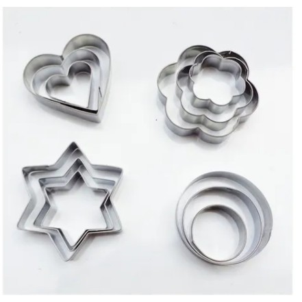 Kit Cortadores de Biscoitos inox 12 peças Marca: FY Faça Biscoitos com formatos diferentes de forma prática e rápida. Com o Kit de Cortadores de Biscoito da FY você faz lindos biscoitos em até 4 formatos diferentes. Medidas Estrela: 1- Cumprimento 6,5 cm x Largura 5,5 cm x Altura 1,5 cm 1- Cumprimento 5,5 cm x Largura 4 cm x Altura 1,5 cm 1- Cumprimento 4 cm x Largura 3 cm x Altura 1,5 cm Medidas Coração: 1- Cumprimento 6 cm x Largura 6,5cm x Altura 1,5 cm 1- Cumprimento 4,5 cm x Largura 5 cm x Altura 1,5 cm 1- Cumprimento 3 cm x Largura 3,5 cm x Altura 1,5 cm Medidas Flor: 1- Cumprimento 7 cm x Largura 6,5 cm x Altura 1,5 cm 1- Cumprimento 6 cm x Largura 5,5 cm x Altura 1,5 cm 1- Cumprimento 4,5 cm x Largura 4 cm x Altura 1,5 cm Medidas Circulo: 1- Diâmetro 5 cm x Altura 1,5 cm 1- Diâmetro 4 cm x Altura 1,5 cm 1- Diâmetro 3 cm x Altura 1,5 cm