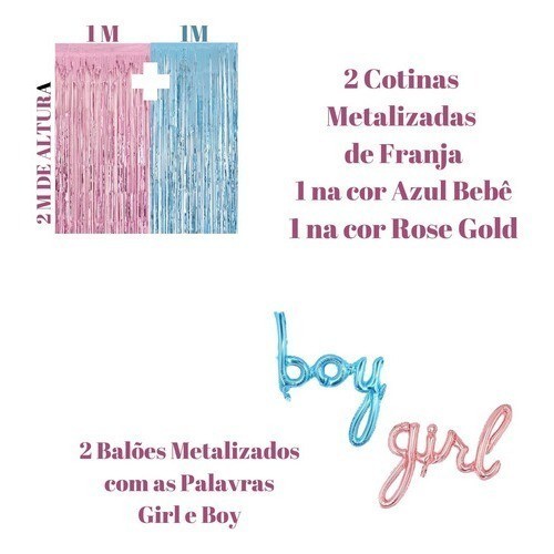 Kit Cortina Balão Metalizado Chá De Revelação Boy Girl