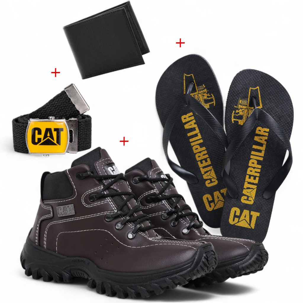 Kit Coturno Masculino Caterpillar + Chinelo + Carteira + Cinto Lançamento Confortável e Estiloso