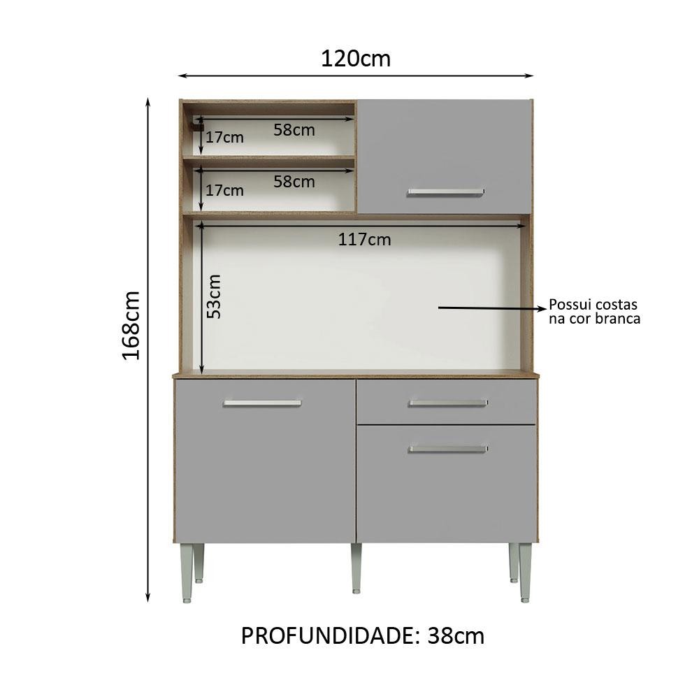 Kit Cozinha Compacta 120cm Rustic/Cinza Life Madesa