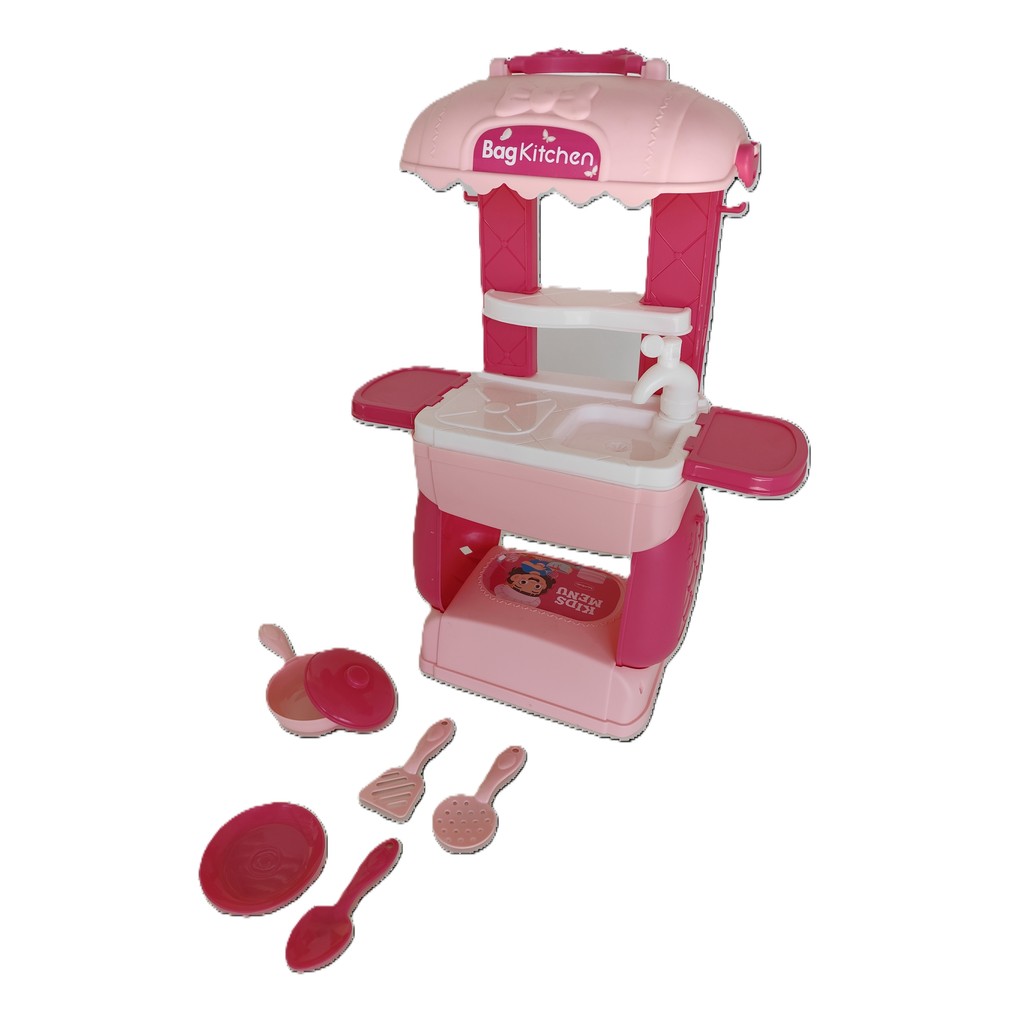 Kit Cozinha de Brinquedo Portátil Vira Maleta Infantil Rosa