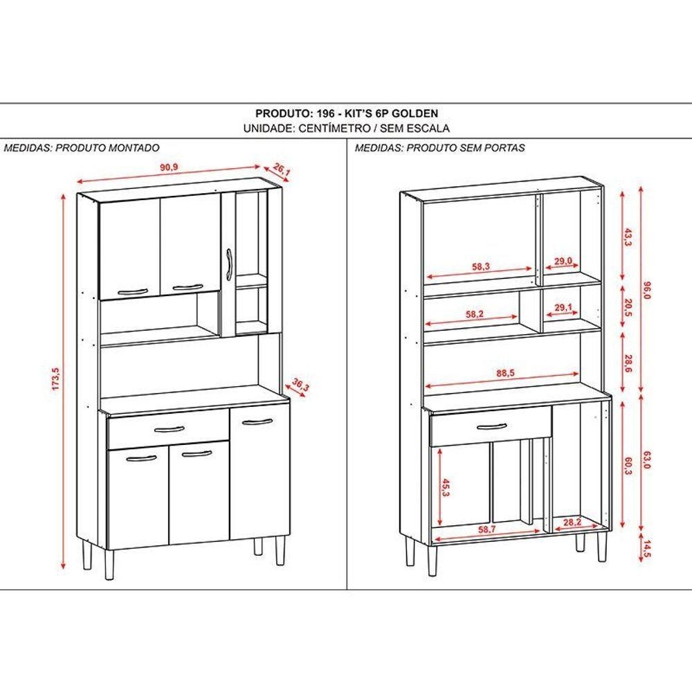 Kit Cozinha Golden 6 Portas Freijó Gris - Kits Paraná Kit Cozinha Golden 6 Portas Freijó Gris - Kits Paraná Ideal para ambientes compactos a Kits Paraná desenvolveu o Kit de cozinha Golden com materiais de ótima qualidade buscando maior durabilidade ao móvel. Conta também com amplo espaço interno para deixar os utensílios organizados e deixar a cozinha moderna e elegante. Confira e aproveite! Características técnicas: - Desenvolvido em MDP - 6 Portas sendo 1 com vidro - 1 Gaveta - Dobradiças metálicas - Corrediças metálicas - Puxadores em plástico - Pés plásticos resistentes - Lindo design Dimensões: Altura: 173,5 cm Largura: 90,9 cm Profundidade: 36,3 cm OBS: Não acompanha decorações, utensilios, elétros e acessórios. Informações importantes: - Não realizamos a montagem ou instalação do produto, porém acompanha manual de instruções. - Toda mercadoria segue segurada contra qualquer sinistro, em caso de anormalidade, recuse.; - As caixas ou pacotes possuem identificação com o nome, cidade e quantidades de volumes relativos à compra para conferencia do recebedor.