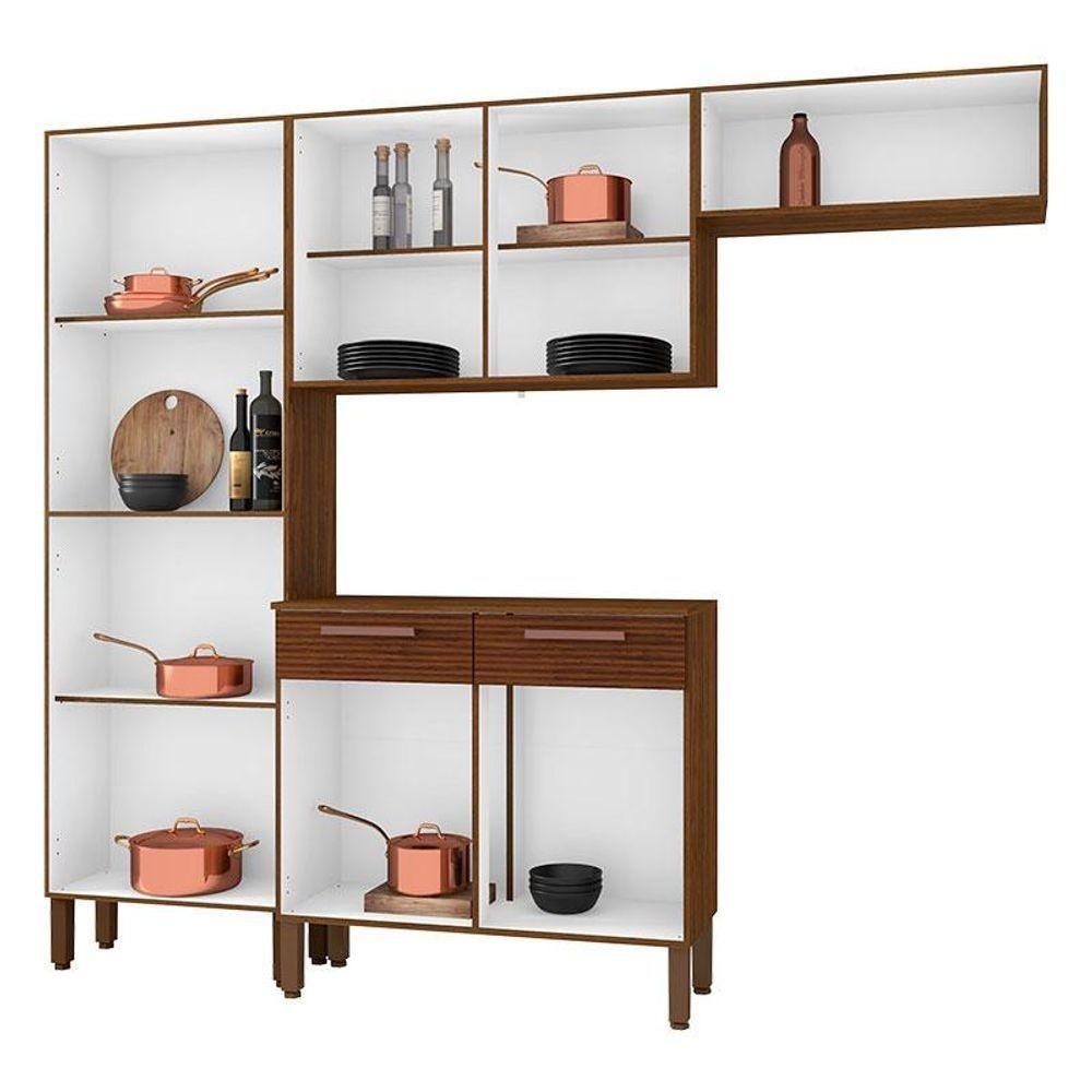 Kit Cozinha Nala 4 Peças Nogueira Off White Ripado - Kits Paraná