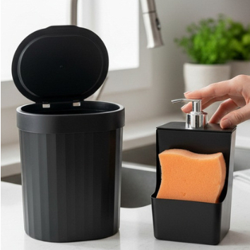 ✨ Kit Cozinha Completo para sua Pia ✨ Mais organização, mais praticidade e menos bagunça no dia a dia 💛 🗑️ Lixeira de pia 2,5L 📏 20 cm (A) x 16 cm (L) x 13 cm (P) Ideal para uso diário, compacta e discreta 🧼 Dispenser de detergente 500 ml com suporte para bucha 📏 18 cm (A) x 10 cm (L) x 9 cm (P) Tudo sempre à mão, sem ocupar espaço ✔️ Design compacto ✔️ Facilita a rotina na cozinha ✔️ Deixa a pia organizada e funcional Perfeito para apartamentos, cozinhas pequenas e quem ama praticidade 🫧✨ 👉 Garanta já o seu e transforme sua pia!