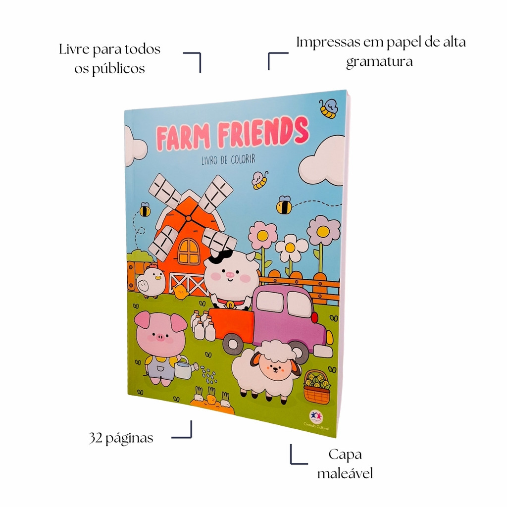 Relaxe e Divirta-se com esse Encantador Livro de Colorir! Descrição do Produto: O livro Cozy Time | Farm Friends é perfeito para quem busca momentos de relaxamento e criatividade. Com ilustrações temáticas de vida na fazenda, este livro de colorir oferece desenhos detalhados e encantadores para todas as idades, desde crianças até adultos que amam atividades terapêuticas. Principais Benefícios: Ilustrações temáticas de animais da fazenda, paisagens rurais e cenários encantadores Papel de alta qualidade que evita vazamentos e permite uso com lápis, canetas ou giz de cera Desenhos variados, desde níveis simples até detalhados, para diferentes habilidades Alívio do estresse Perfeito para todas as idades, ideal para crianças, adolescentes e adultos Indicado Para: Crianças que amam colorir e aprender sobre animais Adultos buscando uma atividade relaxante e criativa Professores e terapeutas que utilizam a arte como ferramenta educacional ou terapêutica Presente criativo para aniversários, Natal ou outras ocasiões especiais