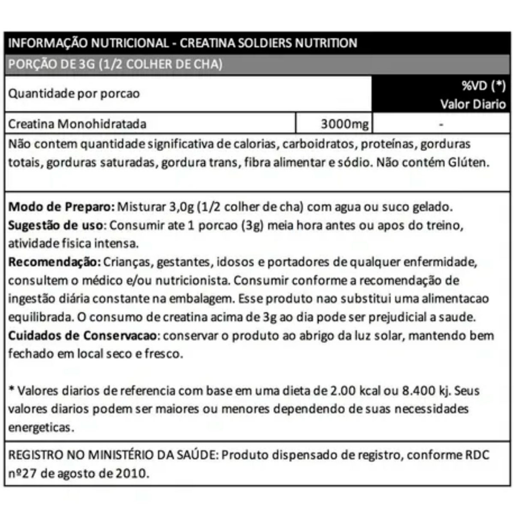 Kit: Creatina Monohidratada 250g + Taurina 250g + Leucina 250g + Glutamina 250g - 100% Puro Importado - Soldiers Nutrition ESTE KIT CONTÉM OS SEGUINTES ITENS: - Creatina Monohidratada 250g; - Taurina 250g; - Leucina 250g; - Glutamina 250g Creatina Monohidratada 250g - 100% Pura Importada - Soldiers Nutrition Acompanha Colher Dosadora 3g BENEFÍCIOS DA CREATINA: - Aumenta a capacidade do músculo de gerar força; - Aumento de massa magra; - Aumento da capacidade de treinamento; - Previne o catabolismo muscular; A creatina é um derivado de aminoácidos obtida através da dieta de síntese por nosso próprio organismo. Ela está presente essencialmente no músculo e auxilia na manutenção dos níveis de energia durante períodos breves de exercício intenso. Ou seja, sua função é crucial nos treinos com muito peso na busca pelo ganho de massa. Leucina 1Kg - 100% Pura Importada - Soldiers Nutrition BENEFÍCIOS DA LEUCININA: - Estimula o crescimento muscular; - Melhora a sensibilidade à insulina; - Inibe o catabolismo; - Auxilia na queima de gordura; - Regulação do colesterol. A leucina é um dos aminoácidos de cadeia ramificada (BCAAs), um grupo de aminoácidos muito importante para a saúde muscular ela está envolvida diretamente no processo de fornecimento de energia à fibra muscular durante a contração e relaxamento, síntese e regeneração das proteínas musculares, está envolvido também na produção hormonal além de estimular a utilização de gordura como fonte de energia. Taurina 250g - 100% Pura Importada - Soldiers Nutrition BENEFÍCIOS DA TAURINA: - Construção de massa muscular; - Emagrecimento; - Anti-Catabolismo; - Diminuição da Fadiga Muscular; - Vasodilatador; - Ação antioxidante, combatendo os radicais livres que danificam as membranas celulares; - Ação desintoxicante, facilitando a excreção de substâncias pelo fígado que não são mais importantes ao corpo. A Taurina é uma substância essencial para aqueles que querem ganhar massa muscular. Ela ajuda evitar o catabolismo, pois ajuda o corpo a utilizar a gordura como fonte de energia evitando as proteínas sejam degradadas para garantir essa função. Glutamina 250g - 100% Pura Importada - Soldiers Nutrition Acompanha Colher Dosadora 5g BENEFÍCIOS DA GLUTAMINA: - Controla o processo de anabolismo e catabolismo; - Removo os excessos de amônia e nitrogênio do corpo; - Regula a síntese e degradação de proteínas; - Regulação do sistema imune. A glutamina participa de forma relevante na síntese de outros aminoácidos e ajuda a manter a homeostase dos tecidos durante o processo de catabolismo. Outras funções importantes inerentes à glutamina é o fato dela conseguir liberar quantidades extras de hormônios na corrente sanguínea, como por exemplo, a testosterona. SOMOS FABRICANTES, PRODUTO DIRETO DA FÁBRICA PARA VOCÊ COM TOTAL GARANTIA DE QUALIDADE ANVISA: Registro ISENTO conforme resolução RDC 27 de 06 de agosto de 2010 anexo I. Registro ISENTO conforme resolução RDC 240/2018.