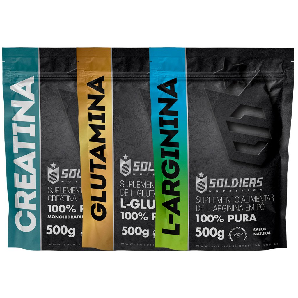 Kit: Creatina 500g + Glutamina 500g + Arginina 500g Soldiers Nutrition Força Performance