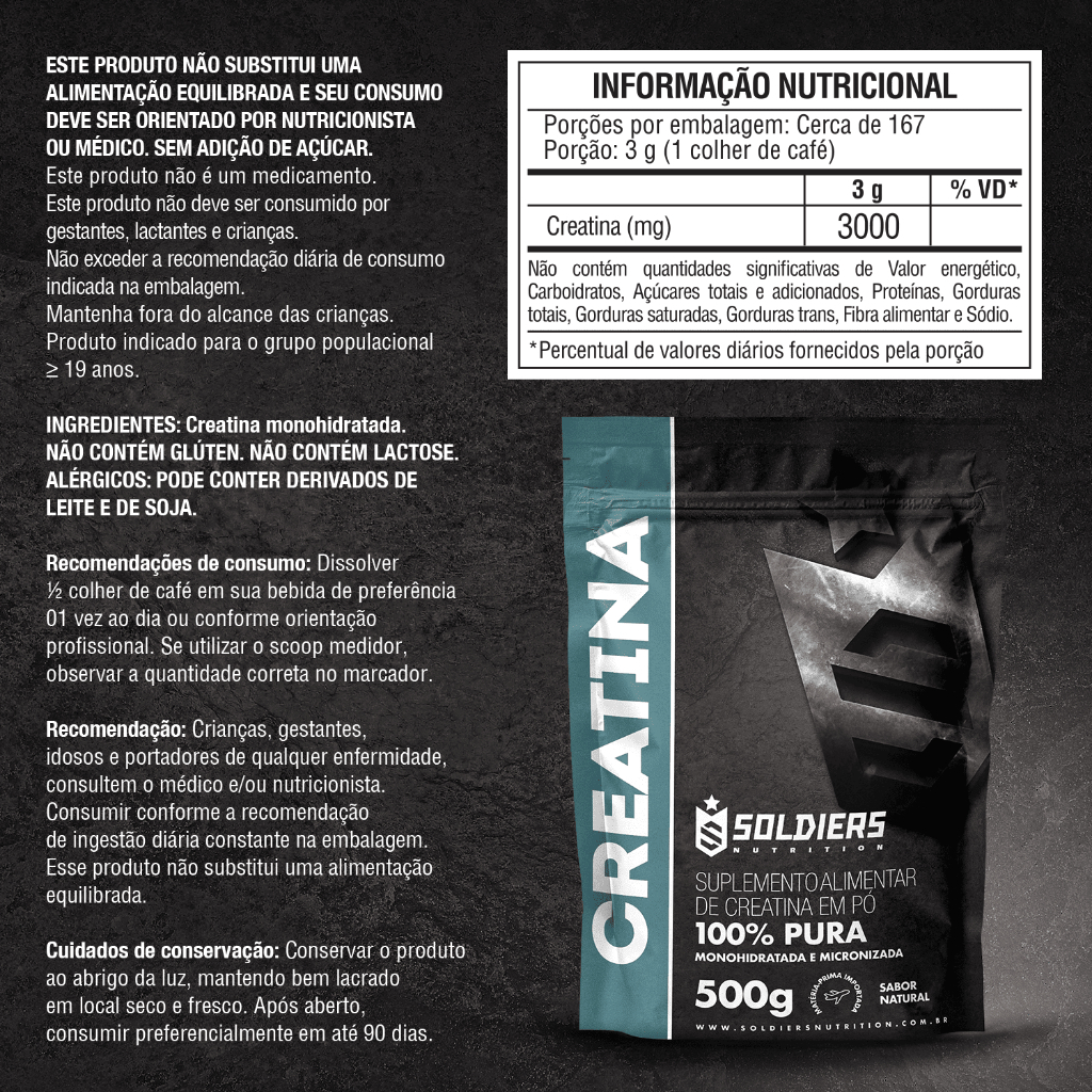 Kit: Creatina Monohidratada 500g Pura + Termogênico Cafeína Íntera Focus - Soldiers Nutrition
