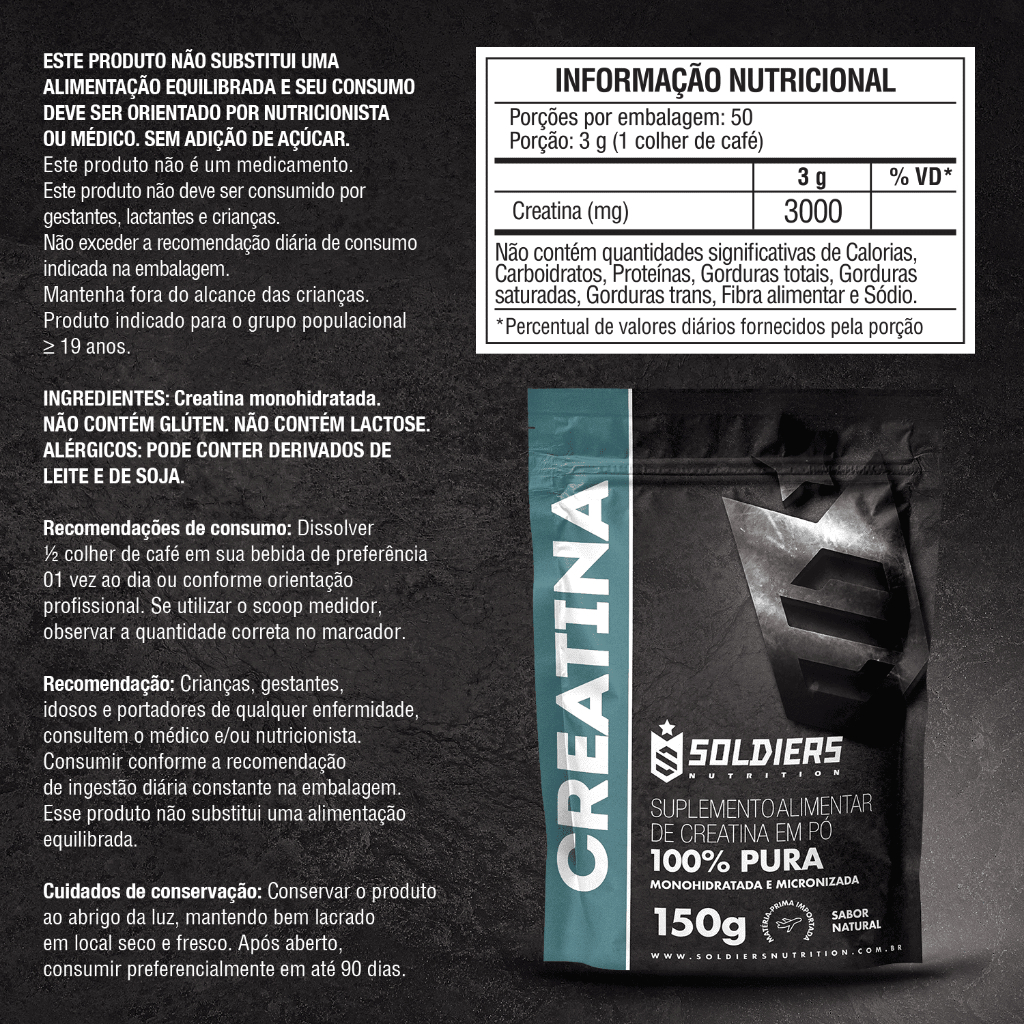 Kit: Creatina Monohidratada Pura 150g + Termogênico Cafeína Íntera Focus Natural - Soldiers Nutrition