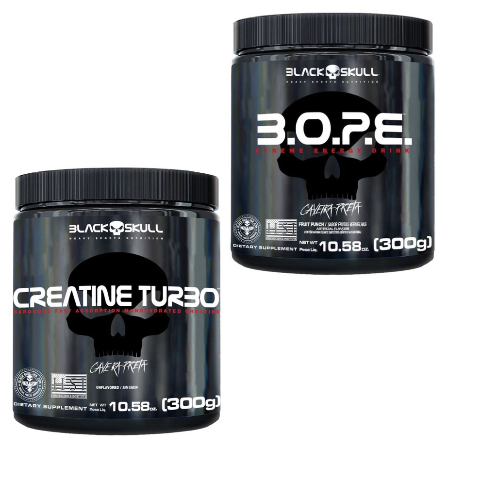 Kit Creatina Turbo 300g + Pré treino Bope 300g Pre Workout - Black Skull