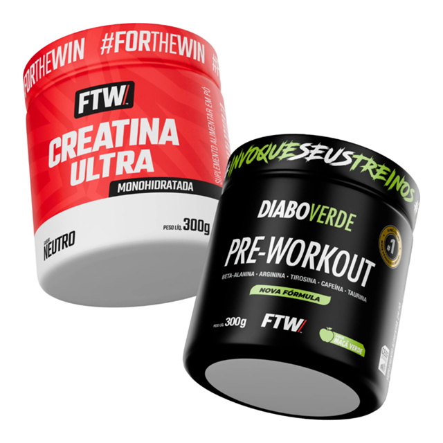 Kit Creatina Ultra Pote 300g + Pré-Treino Diabo Verde Pote 300g - FTW