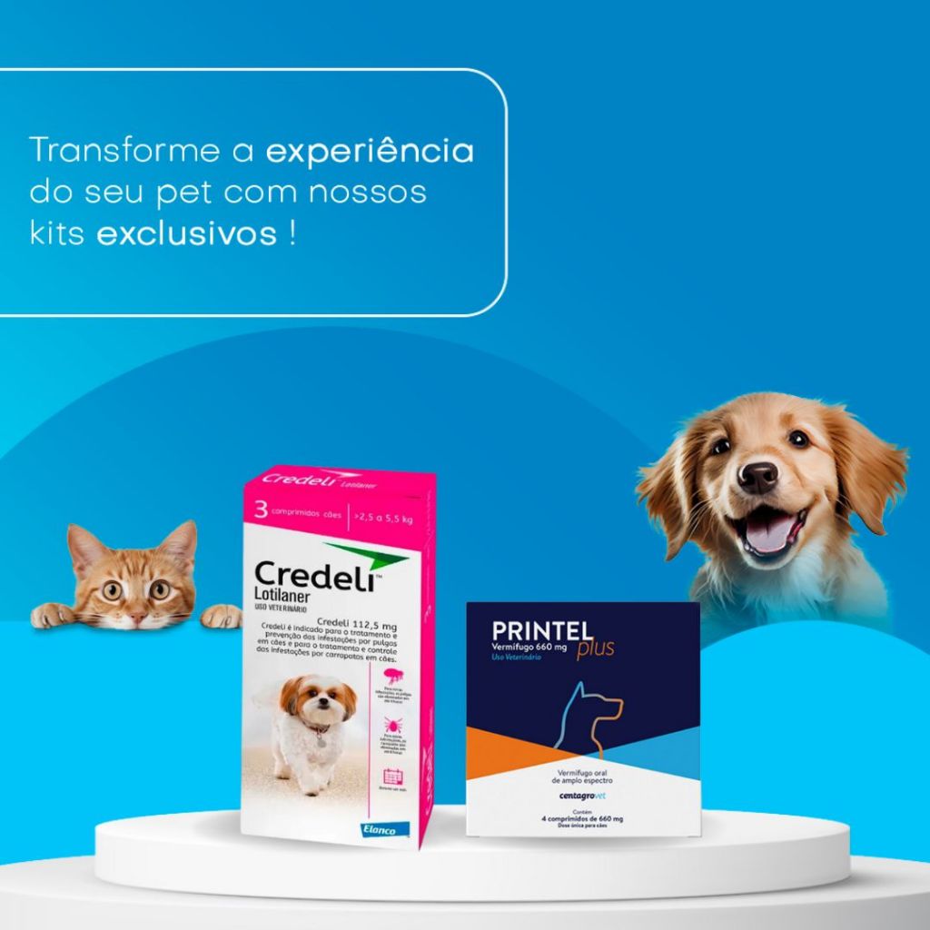 Kit Credeli Antipulgas 3 Comprimidos Cães de 2,5 a 5,5kg + Vermífugo Printel Plus 4 Comprimidos