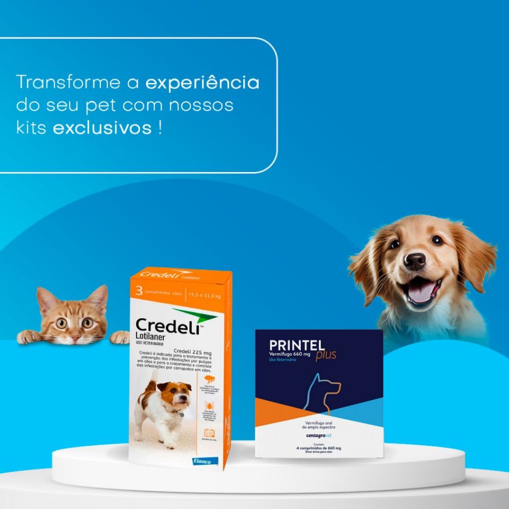 Kit Credeli Antipulgas 3 Comprimidos Cães de 5,5 a 11kg + Vermífugo Printel Plus 4 Comprimidos