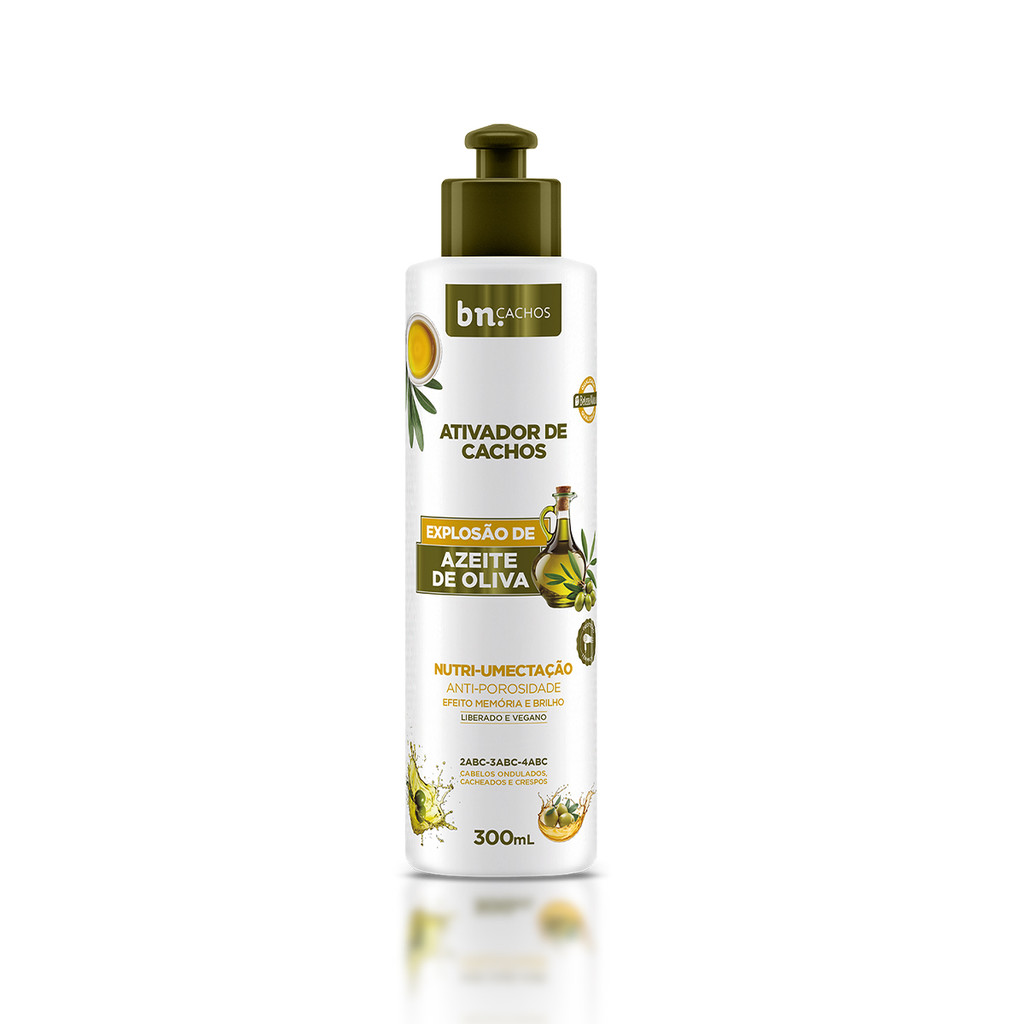 Linha Explosão de Azeite de Oliva – bn.Cachos Cabelos secos e com frizz nunca mais! A bn.Cachos desenvolveu uma linha completa com o poder do Azeite de Oliva, ingrediente rico em lipídeos e vitamina E, que repara, nutre profundamente e combate o ressecamento dos fios. Todos os produtos são veganos e liberados, ideais para devolver maciez, brilho e definição natural aos cabelos. Conheça os produtos da linha: Creme de Pentear Explosão de Azeite de OlivaAjuda a repor a oleosidade natural do cabelo perdida diariamente. Sua fórmula garante umectação ao cabelo, recupera a nutrição e devolve as vitaminas essenciais para a saúde dos fios. Ativador de Cachos Explosão de Azeite de OlivaHidrata, nutre e reativa a memória dos cachos. Define, alinha os fios e garante um day after poderoso. Possui efeito condicionante e proteção térmica. É liberado! Resultado: cabelos nutridos, livres do ressecamento, com menos frizz, mais brilho e definição natural.