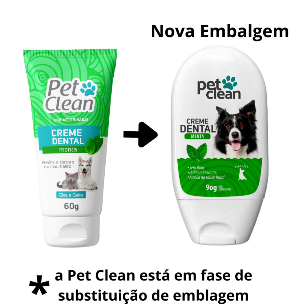 KIT CONTÉM: 1 CREME DENTAL 60g 1 ESCOVA DEDEIRA DE SILICONE(COR ALEATÓRIA) CREME DENTAL: Assim como os humanos, é preciso cuidar da saúde bucal de cães e gatos para garantir mais bem-estar à eles. O creme dental auxilia no combate ao acúmulo de tártaro, gengivite e placas bacterianas, proporcionando hálito fresco ao seu pet. Sabores: -Menta -Morango -Tutti-Frutti DEDEIRA: Escova dental para fazer a limpeza do dente de seu Pet - Utilizar colocando no dedo