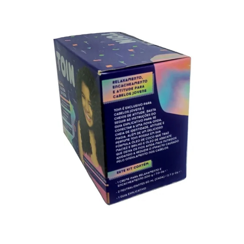 Quando sua filha usa Toin tanto você quanto ela realizam seus desejos. Os cabelos ficam "Floft, Floft, Floft". Seus filhos terão muito orgulho dos cachos e vão se divertir à vontade sem se preocupar com os cabelos. Bonitos, fáceis de pentear, sem volume excessivo e com cachinhos bem definidos. É por isso que VOCÊ e a família Toin cuidam dos cabelos de seus filhos com todo carinho e proteção, porque todos os produtos são suaves e dermatologicamente testados. Basta seguir o passo-a-passo para reduzir volume, suavizar e definir os cachos. INDICAÇÃO Este produto é indicado para adolescentes a partir dos 12 anos. Produto à base de Tioglicolato. AÇÃO Relaxa e encacheia os cabelos jovens. ATIVOS Lanolina. BENEFÍCIOS Reduz o volume, suaviza e define os cachinhos. Deixa o cabelo macio. Sem Soda. RESULTADO Você arrasando no seu 1º relaxamento.