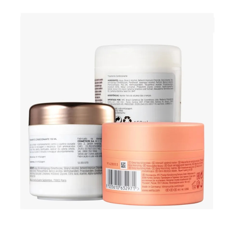 Este kit contém: - 1 Máscara Invigo Nutri-Enrich 500ml - 1 Máscara Capilar Fusion Reconstrução 150ml - 1 Máscara Capilar Oil Reflections Luminous 500ml Kit de cronograma capilar para cabelos quebradiços: repara a fibra capilar, protege de quebras, nutre e hidrata profundamente. Kit Cronograma Capilar Fios Perfeitos revitaliza o cabelo fragilizado, age na reposição de nutrientes essenciais e possui agentes condicionantes. Além disso, dá brilho e toque sedoso. Modo de Usar: Após realizar o processo de lavagem rotineiro de seus cabelos, aplique uma das máscara seguindo seu cronogroma.