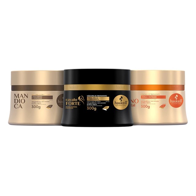 Kit Cronograma Capilar Haskell para Cabelos Frágeis – Hidratação, Nutrição e Reconstrução | 3 Máscaras de 300g
