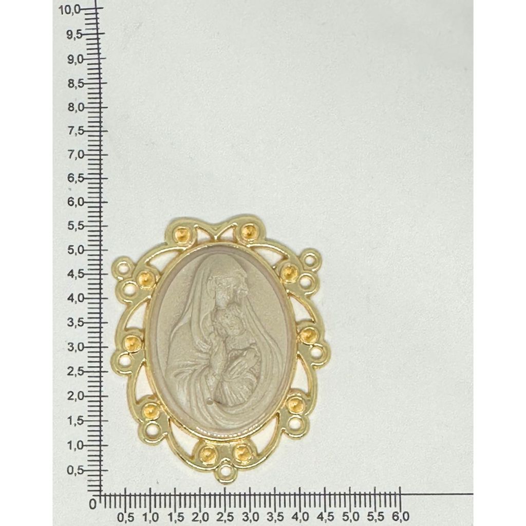 Conjunto com Cruz e Salve Rainha com Camafeu de Ns com Menino Jesus. (OBS: Peça Dourada e Prata banhada em verniz cataforético, não escurece e aumenta a durabilidade peça!) PESO CONJUNTO: 28,4gr TAMANHO CRUZ: 84mm x 52mm TAMANHO SR: 52mm x 48mm