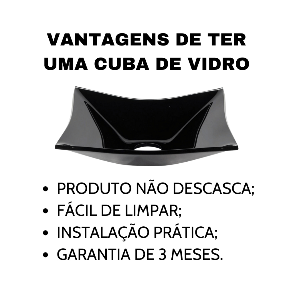 KIT CUBA BANHEIRO PIA DE VIDRO QUADRADA 34CM + VÁLVULA CLICK INOX INTELIGENTE