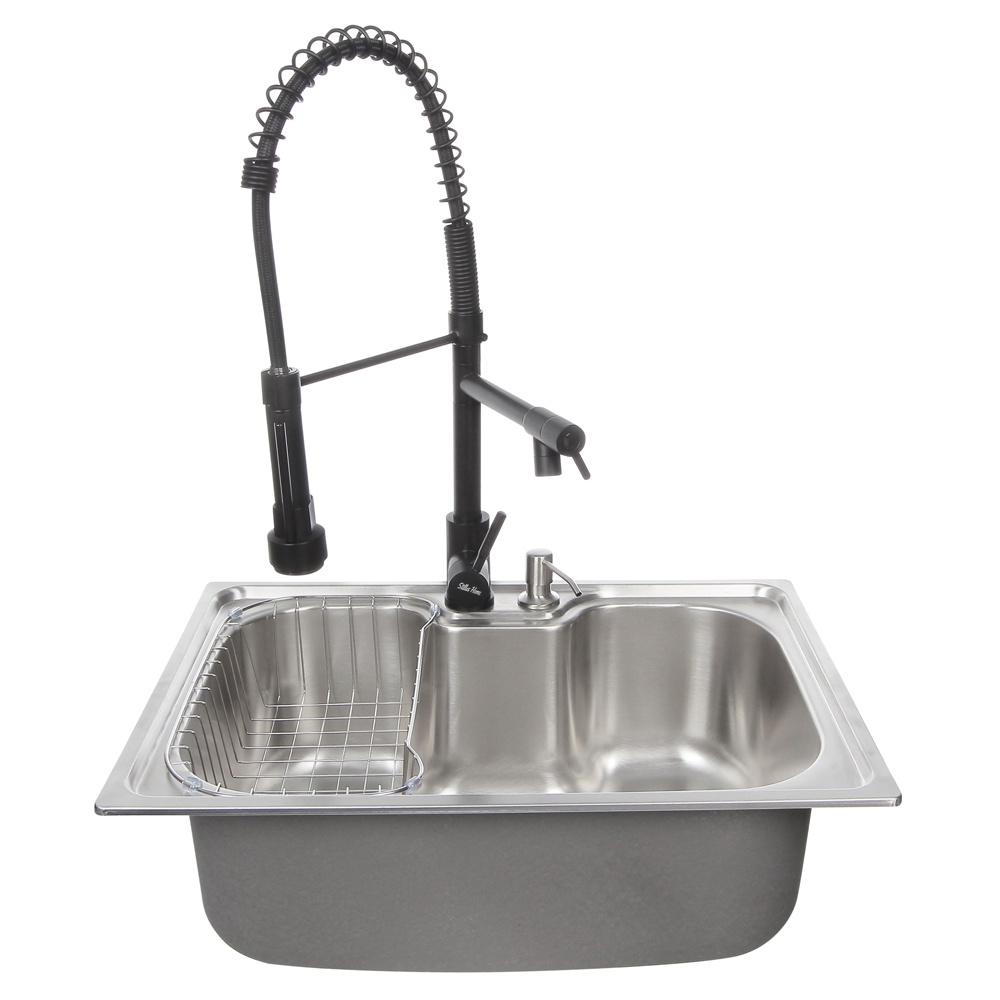 KIT CUBA GOURMET COZINHA AÇO INOX 304 - 60x42cm COM ACESSÓRIOS + TORNEIRA GOURMET BLACK MONOCOMANDO!!! Cuba Gourmet de Aço Inox ideal para quem busca sofisticação e praticidade, acompanhada da prática, moderna e maravilhosa Torneira de Cozinha Gourmet Monocomando!!!! Cuba produzida em aço inox 304 com 100% de pureza no material, ou seja, não enferruja e não cria pontos de ferrugem com o passar do tempo, com 0,8mm de espessura, medindo 60x42x21,5cm. Acompanha válvula de 4 1/2" que possibilita a instalação de Triturador de Resíduos, Escorredor de Louça em Aço Inox e Dispenser de detergente em Aço Inox. Produto de altíssima qualidade e muita praticidade, equipada com sistema antirruído, evita que o fluxo de água ecoe na cuba diminuindo assim o barulho para seu maior conforto!!! Salienta-se sua beleza e estética com linhas modernas e acabamento em aço inox escovado acetinado ela é resistente e fácil de limpar, evitando a corrosão e conservando sua beleza por muito mais tempo! Especificações: Marca: Stillus Home Medidas: 60x42x21,5cm Material Predominante: Aço inox 304 Espessura: 0,8mm Acabamento: Escovado Acetinado Aplicação: Embutir ou Sobrepor Posição da Válvula: Centralizada Furação da Válvula: 4.1/2" Furo da torneira: 3,5 cm de diâmetro Furo do Dosador: 2,5 cm de diâmetro Válvula Escape/Ladrão: Não Indicação: Cozinha Aceita Triturador: Sim Anti-Ruído: Sim (Fundo) Acompanha Acessórios: Sim Itens inclusos: 1 Torneira Gourmet Monocomando Black 50cm 1 Cuba Gourmet Aço Inox 304 - 1 Cesto escorredor 1 Dosador de detergente de 500ml 1 Válvula de escoamento. Garantia 6 meses!!!