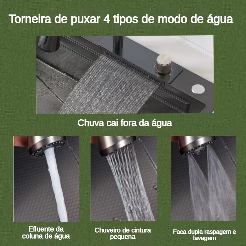 Material Predominante: Aço inox 304 Espessura: 1,2 mm Acabamento: Nano tecnologia Aplicação: Embutir ou Sobrepor Posição da Válvula: Centralizada Furação da Válvula: 4.1/2" Válvula Escape/Ladrão: Não Indicação: Cozinha, Ilha, Área Gourmet Aceita Triturador: Sim Anti-Ruído: Sim (Fundo) Acompanha Acessórios: Sim Sifão: Sim Dimensões Aproximadas: Medidas externas: 75x45x20 cm Medidas internas cuba grande: 65x 30 x 20 cm Válvula Escape/Lad Modelo B: com função de temperatura de exibição, sem caixa de porta-ferramentas, torneira de água pequena para purificação de água Modelo A: sem função de temperatura de exibição, com caixa de porta-ferramentas , sem torneira de água pequena para purificação de água