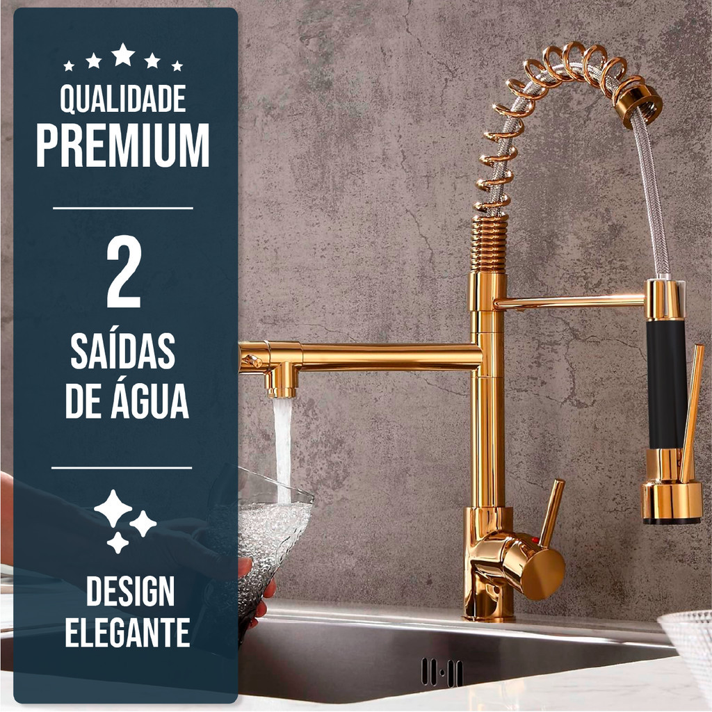 Kit Cuba Cozinha Gourmet Quadrada C/ Torneira Spray Dourada