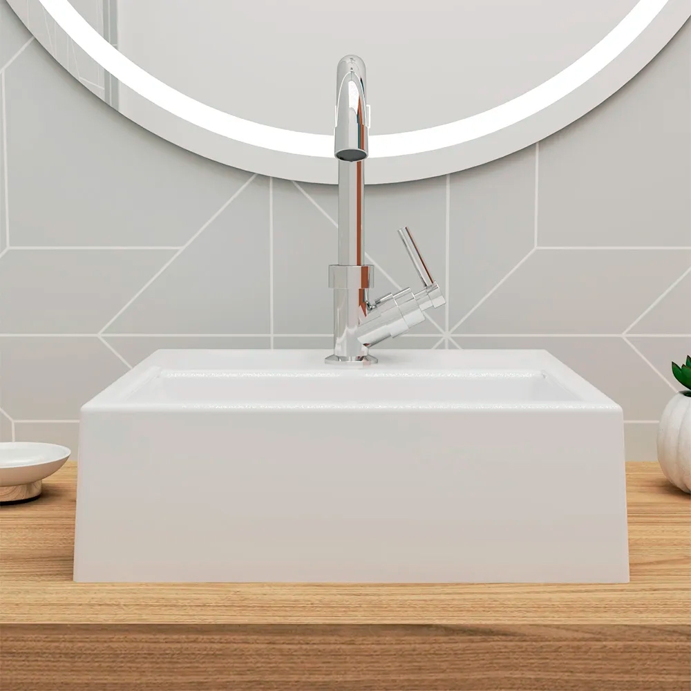 Cuba Pia de Apoio 32x30cm Topázio Branca com Torneira e Válvula Cromada - Beltempo Transforme o seu banheiro com a elegância da Cuba Topázio Beltempo. Fabricada em mármore sintético resistente, essa cuba de apoio traz um design moderno, acabamento polido em Gel Coat e alta durabilidade. Ideal para quem busca sofisticação com praticidade na limpeza e instalação. Acompanha torneira cromada com bica giratória 360° e válvula metálica, formando um conjunto completo e funcional para seu ambiente. DIFERENCIAIS DO PRODUTO - Cuba de mármore sintético polido com pintura em Gel Coat - Torneira com 1/4 de volta e arejador que economiza água - Bica giratória 360° - mais mobilidade e conforto no uso - Válvula produzida em metal cromado resistente - Design sofisticado e acabamento de alto padrão - Instalação prática - modelo de apoio sobre bancada - Embalagem com proteção reforçada para transporte seguro DIMENSÕES DA CUBA - Altura: 9 cm - Largura: 30 cm - Comprimento: 32 cm - Profundidade útil: 7,5 cm - Peso: 3,3 kg TORNEIRA CROMADA - Tipo: Mesa, bica baixa - Altura total: 22 cm - Altura da bica: 14,2 cm - Avanço da bica: 15,3 cm - Acionamento: 1/4 de volta - Material: Plástico ABS cromado - Possui arejador: Sim - Bitola: 1/2" - Peso: 134 g VÁLVULA METÁLICA - Tipo: Padrão - Material: Metal cromado - Diâmetro do encaixe: 5,7 cm - Altura da rosca: 6,8 cm - Bitola da saída: 7/8” - Peso: 78 g ITENS INCLUSOS - 1 Cuba Topázio - 1 Torneira cromada com acessórios de instalação - 1 Válvula metálica padrão DICA DE LIMPEZA Para preservar o brilho e a durabilidade do conjunto, utilize apenas pano macio com sabão neutro. Evite palha de aço ou produtos abrasivos.