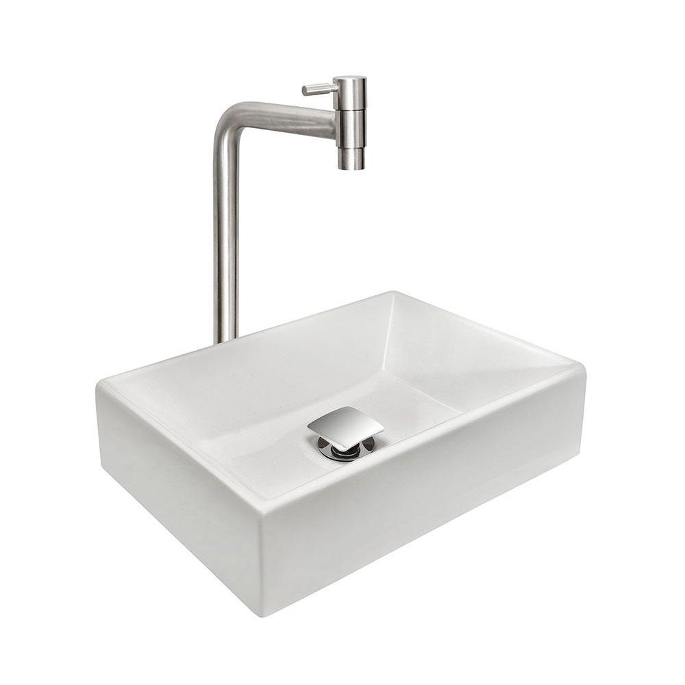Kit Cuba Pia Sobrepor para Banheiro Torino com Torneira Inox e Válvula Click Quadrada